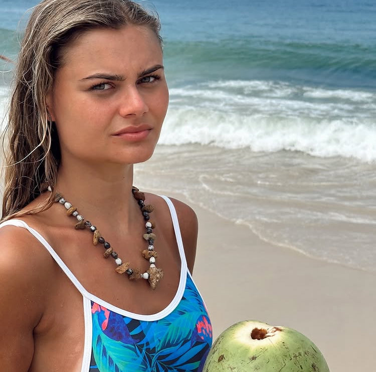 Pedras naturais e sementes de açaí do Brasil, peça única feita à mão.